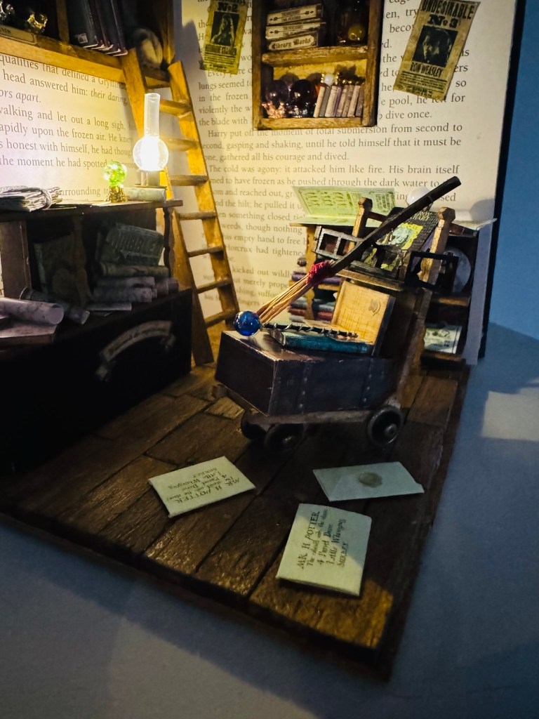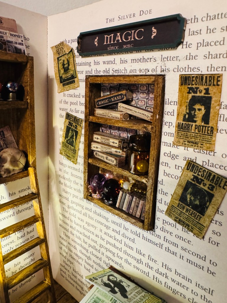 These can be made inside whichever Harry Potter book you prefer. The interior of the display will be made of custom pieces and a mixture of kit pieces.